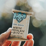 Organic vanilla bean powder, stirred into melted organic Peruvian cacao butter, then set with organic coconut. Its flavour is both indulgent and subtle. Created to celebrate the heritage of our vanilla beans and the pedigree of our coconut, this is a real treat for those who want something a little more gourmet than a Milky Bar. Not that there’s anything wrong with a Milky Bar...